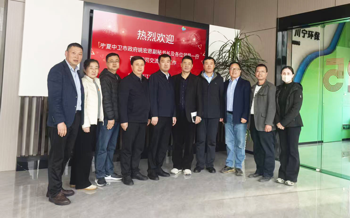 2025年12月10日,由寧夏中衛(wèi)市政府副秘書長(zhǎng)姚宏愿帶隊(duì),工業(yè)園區(qū)黨工委委員李廣強(qiáng),市生態(tài)環(huán)境局副局長(zhǎng)李玉明,市財(cái)政局調(diào)研員李衍萍,工業(yè)園區(qū)管委會(huì)財(cái)政金融局局長(zhǎng)陳衛(wèi)軍,工業(yè)園區(qū)管委會(huì)綜合服務(wù)局干部馬紅霞等組成的政府考察團(tuán),專程蒞臨我司進(jìn)行考察調(diào)研。此行旨在深入了解我司在環(huán)??萍碱I(lǐng)域的創(chuàng)新成果與運(yùn)營(yíng)模式,共商合作大計(jì),共繪發(fā)展藍(lán)圖。我司總經(jīng)理邵永富攜核心管理團(tuán)隊(duì)熱情接待,雙方舉行了座談交流會(huì)。